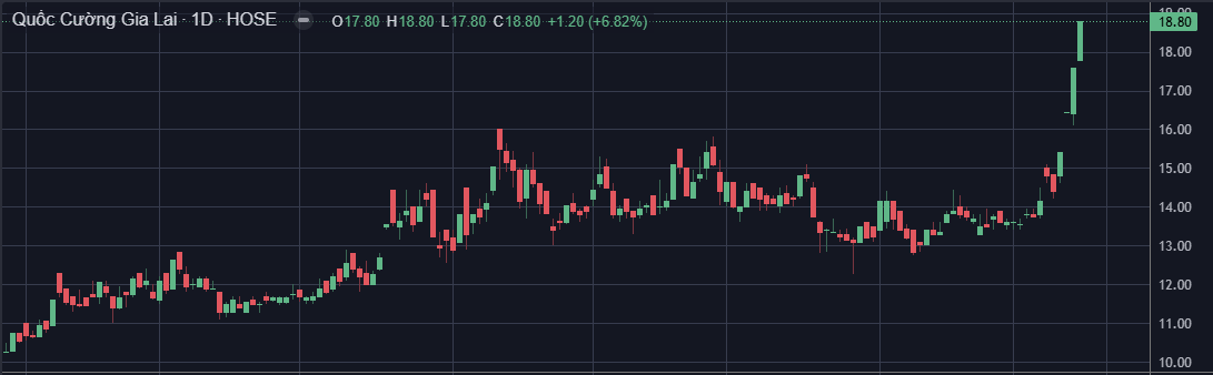 QCG đạt mức 18.800 đồng/cổ phiếu, tăng xấp xỉ 30% chỉ trong chưa đầy một tuần giao dịch.