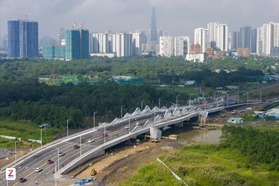cầu đường Liên Phường. Đây là trục giao thông huyết mạch tại khu Đông TP.HCM, góp phần giảm tải cho nút giao An Phú đã chính thức thông xe sáng 8/11. Ảnh: Quỳnh Danh. |