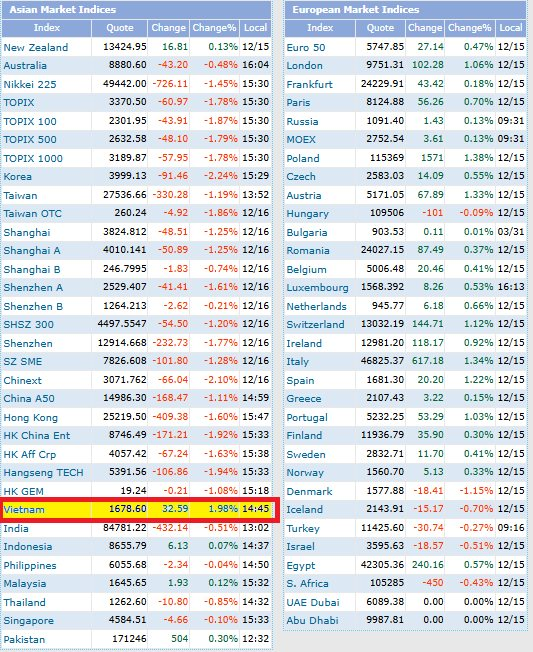 Đóng cửa, VN-Index bật tăng 33,17 điểm lên sát mốc 1.680 điểm (tương ứng tăng 2,02%). Mức tăng này cũng đưa thị trường chứng khoán Việt Nam đi ngược xu hướng chung của khu vực châu Á, trở thành thị trường tăng mạnh nhất khu vực.