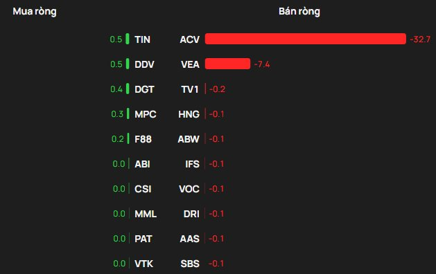 Ngược chiều, ACV bị khối ngoại bán ròng 33 tỷ đồng. Ngoài ra khối ngoại cũng bán ròng tại VEA, TV1,...