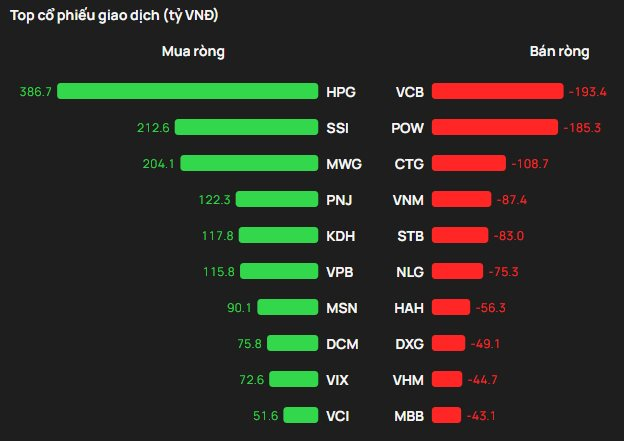 Ngược lại, VCB là cổ phiếu khối ngoại bán mạnh nhất với 193 tỷ đồng. Theo sau, các cổ phiếu POW và CTG cũng bị "xả" 185 tỷ đồng và 109 tỷ đồng.