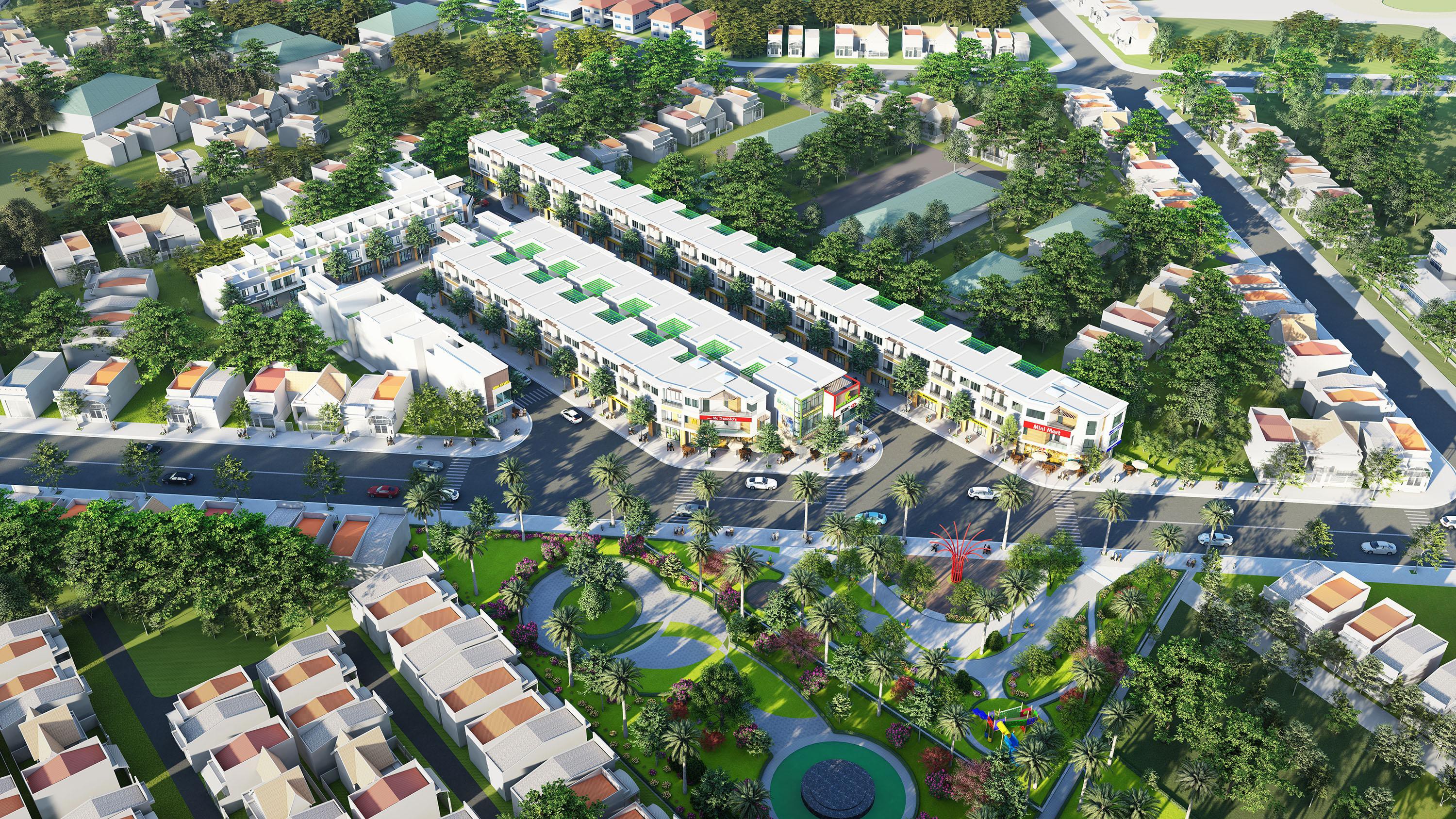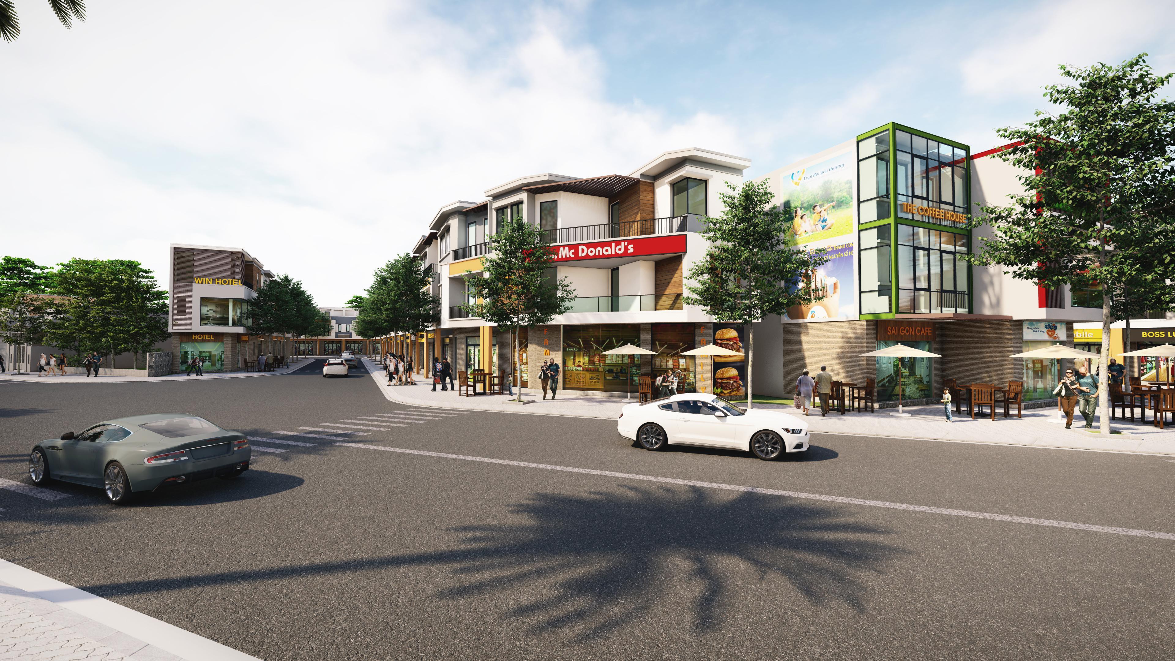 Nhà phố shophouse toạ lạc tại mặt tiền đường, bao quanh bởi khu cư dân đông đúc chính là thỏi nam châm hút nhà đầu tư