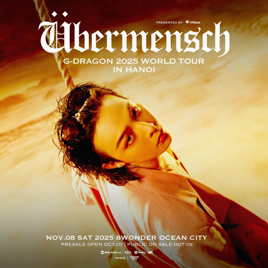 G-DRAGON 2025 WORLD TOUR [Übermensch] IN HANOI đã biến ước mơ của hàng triệu người hâm mộ Việt trở thành hiện thực. Đêm diễn G-DRAGON 2025 WORLD TOUR [Übermensch] IN HANOI diễn ra vào ngày 8-11-2025 tại 8Wonder Ocean City với 8Wonder là đơn vị tổ. Đây chính là khoảnh khắc để khán giả Việt tự hào rằng họ đang được sống trong một kỷ nguyên mà những huyền thoại thế giới chọn Việt Nam làm điểm dừng chân xứng tầm.