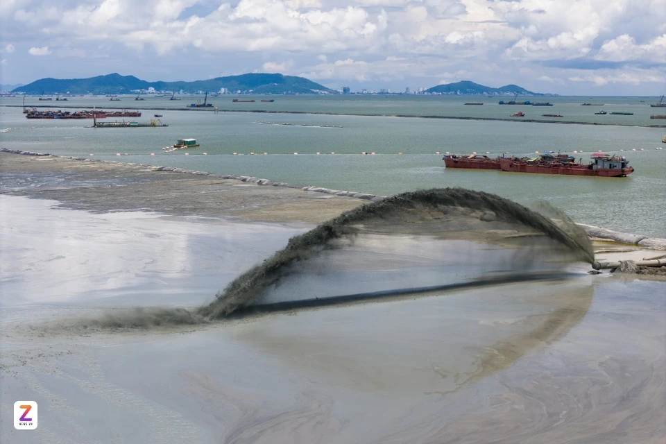 Trong quá trình san lấp, cát được bơm, san gạt thành từng lớp phủ lên bề mặt bùn yếu, sau đó được nén và gia cố để nước thoát nhanh, giúp đất cố kết và đạt khả năng chịu tải cần thiết.